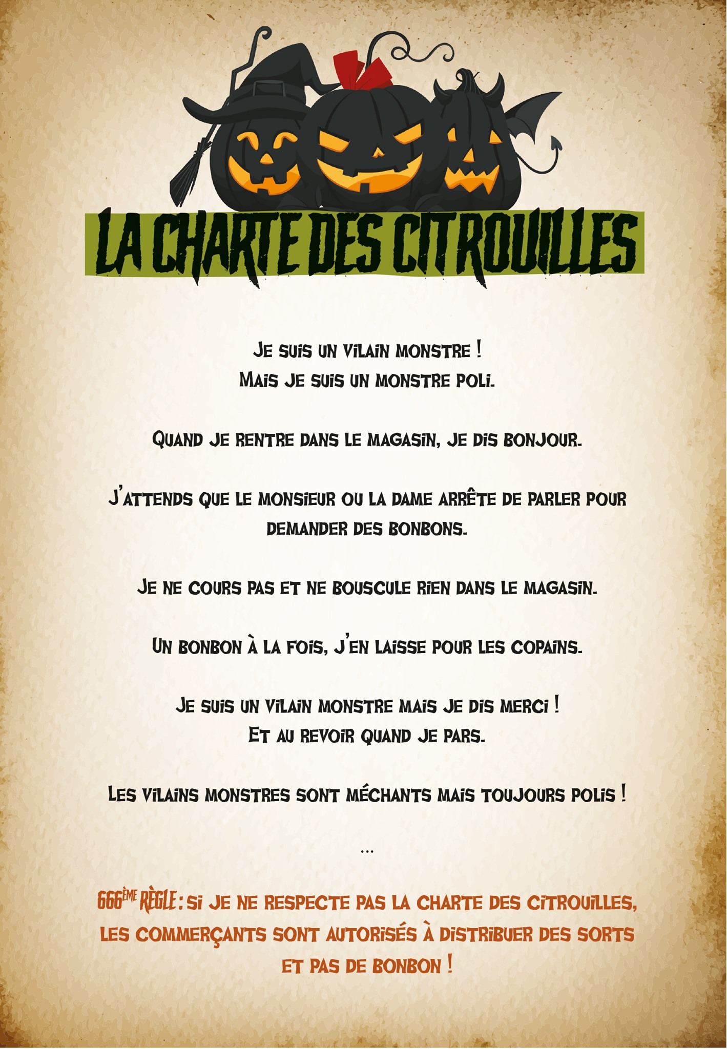 Pour la cinquième année consécutive, Les Trouble-fêtes organisent plusieurs animations dans les rues du centre-ville. Tout est gratuit mais attention à vos petits monstres qui devront respecter certaines règles (charte de la citrouille ci-dessous) car de nombreux commerçants vous accueilleront et donneront de leur temps et leurs bonbons mais à condition que la chasse aux bonbons se fasse dans le respect, la bienveillance et les horaires impartis afin de ne léser aucun enfant.